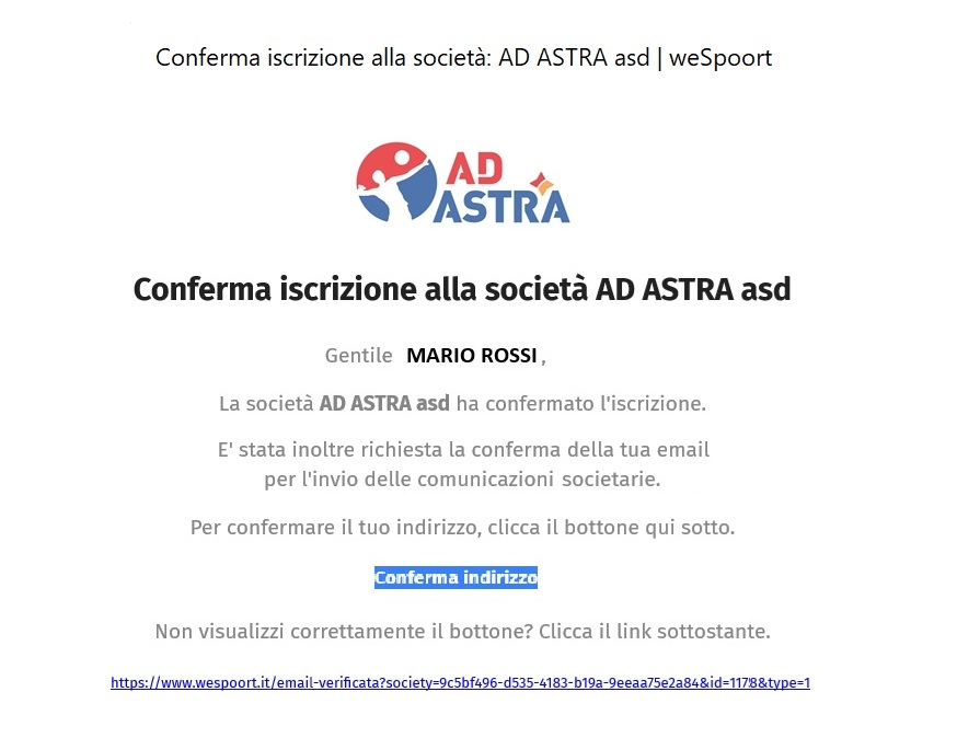 ora sei ufficialmente iscritto alla società sportiva Ad Astra!